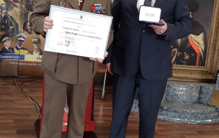 Diploma si medalia de onoare a UMPMV pentru domnului general de brigadă Bartolomeu Constantin Savoiu